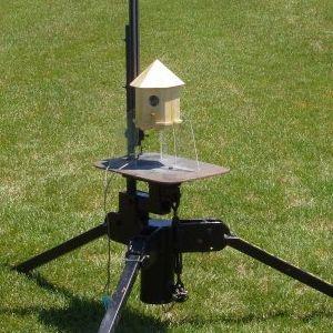 I recently found that with proper care and a diamond cut-off disk in your Dremel, you can cut Lexan pretty easily so I whipped out three fins that extend below the body by about 5 inches. This overhang was based on what I remembered about the proven designs I had seen earlier. The bottom rim of the birdhouse, which protrudes from its base, was notched to accommodate the fins. The fins are also attached and heavily filleted with epoxy.