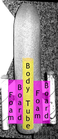 struts tightly against the body tube inside the foam airframe. Now the foam