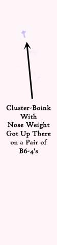 Determined to prove the Cluster Boink could get some altitude, a third launch event took place. For this flight BB shot was added to the payload section. Two B6-4 engines were installed. The two loaded engine pods were left uncapped and without streamers. At ignition, both engines lit right up, and the boost was very stable to a considerable altitude. The Cluster Boink fell to the hard gravel running track about 30 feet away, bounced high in the air, and is ready to fly again without repairs.