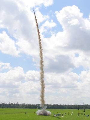Third launch was at NEFAR HPR field later in the year, this time I prepped her with AT H97J-M, and she took off straight as an arrow with ejection right at apogee. It was a beautiful flight on a gorgeous Florida day.