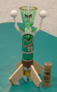 I had to guess on the fins. Since it's pretty heavy on top, I used four 1/8in balsa fins of my own design. These are glued half on the yellow spacer tube and half on the main rocket body.