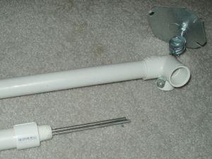 First take the 3-way PVC junction and drill a 1/4" hole through the center of the junction of the pipes. Set the junction so it "stands" on it's own three legs and drill straight down. Next, cut the 4' length of 3/4" PVC pipe into three roughly equal lengths with the hacksaw. If they are an inch or two off, it will not matter so don't sweat it. Now take the three pipe pieces and using the PVC Cleaner and cement (please follow the instructions printed on them) to attach the fittings on as follows: