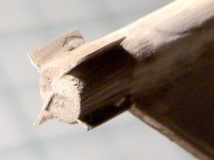 A razor saw was used to cut an X-shaped slot in the aft portions of the missile dowels then sheet mylar fins pressed in.