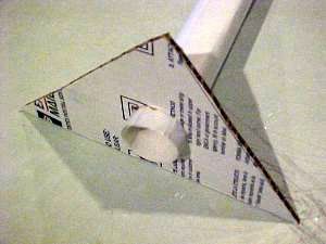 Now make two centering "rings" (centering triangles really) out of the leftover tube. You can use your motor tube to draw circles to cut the holes. You will need to cut a hole for the tube now in the box you made for the body tube. Glue the motor tube assembly in the rocket as you would with any other rocket.