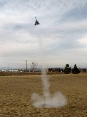 The first flight was on a C6-3. This was a great motor for this kit. The rocket did a little bit of twirl but then straightened out and flew great. The parachute deployed a little after apogee and the Interceptor 18" parachute proved to be a good size. The next motor will be either a B4-2 or B6-2. I did not capture the rocket taking off since the motor took longer than expected to come to life.