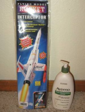What do you get when you combine an Aveeno lotion bottle and an Estes Interceptor rocket kit? Well, you get my entry for the "Design this Spaceship" contest. The name I am giving my design is "Interceptor L" with the "L" being for lotion.