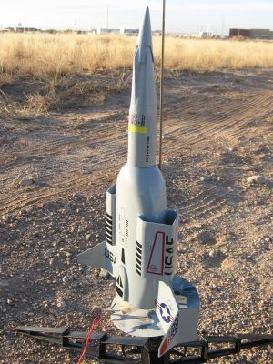 Recovery is by an Estes 18" parachute and used the elastic strap and paper template that came with the Estes Interceptor kit.
