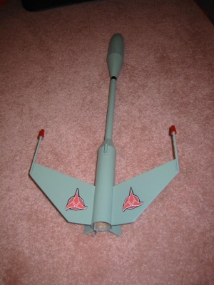 (Scratch) Klingon Targ I also added some detail to the rocket including a cockpit, some raised detail on the fins, and two phaser cannons on either side of the main wings. After I had filled in all the grooves and sealed the fins, I gave the rocket a few shots of Krylon primer, sanding in between.