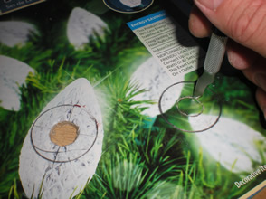 Once the cardboard was dry, five centering rings were drawn. First the centers were cut out with a hobby knife and then sharp scissors were used to cut the rings out of the cardboard. The edges of all the rings were sealed with CA.