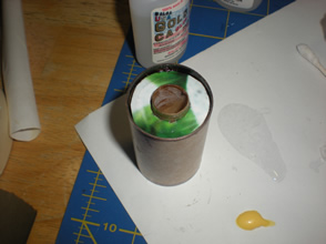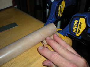 The centering Rings were then tacked onto the BT5 motor mount tubes with CA. Once they were set up, epoxy fillets were applies. Epoxy was also spread over the cardboard rings to strengthen them.