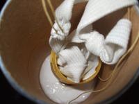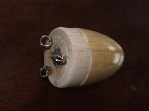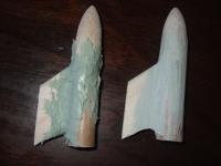 I then drilled out the nosecone and filled the cavity with lead to raise the CG to make the rocket more stable. I screwed in three screw eyes into the base of the nose cone. The nose cone was then added to a 6-foot length of shock cord.