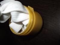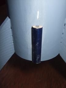 To use one of the surprise items, a pencil, I sanded a pencil in half lengthwise and then cut the pencil into three-inch long lengths. These lengths were then added to the base of the body tube in line with the outboards as decoration. Two of the other surprise items, rubber band and plastic Easter egg, were then used as a protector for the shock cord. The small egg had the top removed and the shock cord was bundled up and secured with the rubber band, the band and egg would come down separately to the rocket, so I attached a small streamer made from the rip stop nylon.