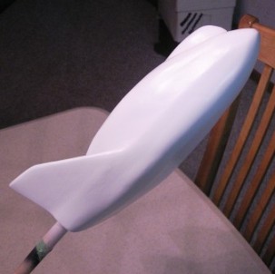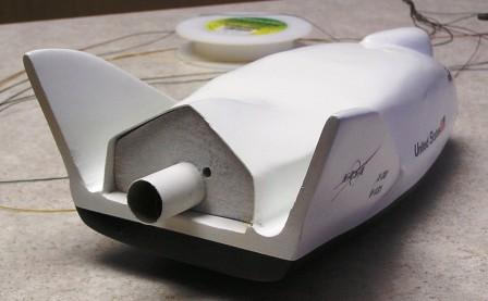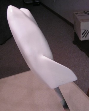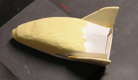 There are 3 separate vacuum formed pieces in this rocket. The top half, bottom half, and cockpit. The top and bottom halves were vacuum formed use to shaped foam masters. The cock pit is form over a balsa master (see pictures). Also see the Tip on vacuum forming.