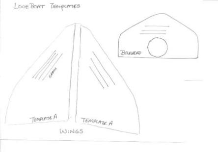 Next, I cut out the 2 side wings (see template A) from the ¼ balsa. I rounded the top and front edges of each wing. Then I sand the angle in each wing to get the appropriate look. I epoxied wings in place and trimmed the excess of the .125 balsa up to the wings.