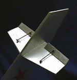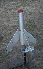 This rocket is easy to build and should be no problem to anyone who has scratch built before. There are no items that need special attention as construction is straight forward with no surprises. Wing and vertical fin alignment is best accomplished using a centering line drawn on main tube. This is a very sturdy model and by experience can take a lot of abuse. No special tools are needed. Supplies came from scrap balsa and tubes and nose cones I already had on hand. Painted it Bright Metallic Silver, and added Red Monocote stars to add to the Korean War Mig 15 look. Filled balsa with Model Sanding Sealer Dope.