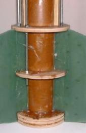The assembled sections were then placed on a test stand in our large back yard. Activation of the charge was through the use of a 9 volt battery. After giving a 5 second countdown the leads were connected to the battery setting of the charge. The results were the successful ejection of the nose cone and parachute bag. It was observed that the bag just made it out of the tube, and so the decision has been made to improve the margin by increasing the amount of powder to 6 grams. This should be more than adequate to achieve a safe result in the flight.