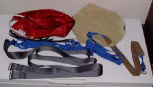 Next, documents the ground testing of the electronics systems including required charge size, pictures of the recovery harnesses and parachutes, and a wiring schematic for the electronics package. Picture 1 (below-left) shows the recovery harness and drogue parachute for apogee deployment. Picture 2 (right) is of the main parachute, and picture 3 (below-right) shows the recovery harness and deployment bag for main deployment.