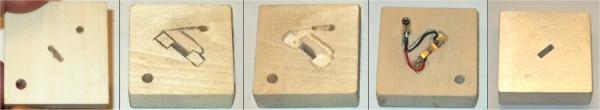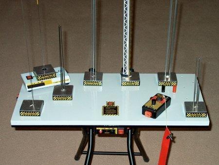The pads themselves are very modular and allow you to build a “fleet” of launch surfaces; my pad types include a small tower, medium tower, large cluster tower, standard Quest two position rod, adjustable rod, 3 fin tower, a Rail with Tower and a small cluster tower. The possibilities are endless and allow you to try all different kinds of launch methods; rods are no longer a must as I have had great success with the tower pads. Using towers allows you to now worry about installing a launch lug and maintains a more realistic appearance for those “scale” models. 4-40 control rods are used for towers, while a rail was custom made from plastic bridge material and a square brass piece of tubing. For rail buttons, I used HO racecar track pins found at most hobby stores; the pin side was epoxied into the model.. The bottom of the pad has a 1/4" stainless alignment pin on one side and the DC power plug on the other. A flat bladed screwdriver is used through the bottom to easily push out used Quest igniters. In addition, the contacts can be cleaned and tension can be adjusted before insertion of the igniter.