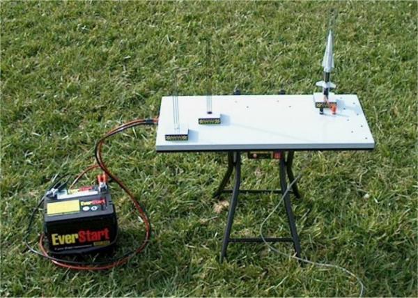 I have been flying MicroMaxx rockets with my kids for a long time now, and through our endeavors, we have made many improvements in certain areas pertaining to the MMX line. One of the first changes we made was to the launch pad/controller; the controller with a 9V battery was barely adequate for launching anything consistently, so we switched to using my homemade HPR single launcher and adapted the pads for this controller; it made a BIG difference! Something else was still missing though…I wanted a launch pad for all seasons, available for launching scratch or kit rockets not limited to the MMX launch rod. In addition, I wanted a pad able to supply enough current for clusters, along with the ability to “Drag Race” my models. Finally, it had to be elevated or provide an easy way to install the igniter in the motor prior to launch; crawling on the ground trying to get the rocket down over the igniter installed in the Quest Pad was getting old. For these reasons, I came up with what I feel is real close to the “Ultimate” in MicroMaxx launchers…I call it the “MicroMaxx Mega Pad!”