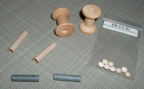 scratch_micromax-spool_partsThere were a variety of sizes, ranging from, as I recall, 1/2 inch in diameter all the way up to 2 inches in diameter. These widths were for the major diameter; that is they represented the diameter of the flanges on the ends of each spool. There were also two spool designs - the modern spool, with thin, narrow flanges just barely larger than the spool's "waist" and "old-fashioned" spools with wide flanges that tapered down to a much narrower waist. They all featured a hole drilled through the center that was proportional in size to the size of the spool.