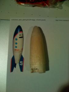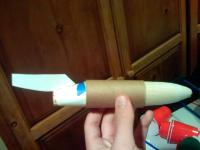 Nose ConeThis rocket is very simple to make. First, start with the nosecone by sanding off the tip and making it more rounded. Continue to sand by hand until the rocket resembles the photos.