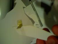 To make the fins, cut them out of cardstock - but cut out six of them. Glue two of them to each other with wood glue or CA. Secure them to the shroud of the rocket with cardstock flaps.