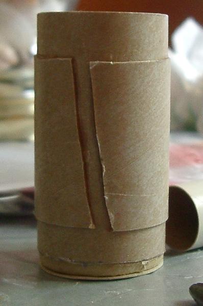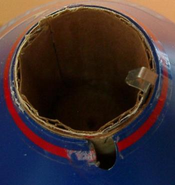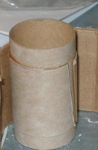 Coat the entire surface of the outside of the cardboard sleeve with wood glue. Roll this up tighter (but not tight) than the BT60 and position it and the engine hook in place. Use your hands to apply pressure outwards on the BT60 until the sleeve sets in place.