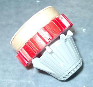 Using the short section of BT5 from the parts list. Test fit inside the space ship cone shaped nozzle. This should fit reasonable well already. To one end, add a BT5/BT20 centering ring. Fill the attachment area with thick CA and push the centering ring/BT5 back into the nozzle. Add additional CA to hold the centering ring to the BT5 from above. Once all of this has set - then you can add another BT5 to the opposite end of the assembly. Knock out the BT55/BT20 disk on one of the two covers. Coat the inside with wood glue where the BT5 disc is still in place. Coat the top surface with wood glue where the 29mm decorative ring will go between the nozzle and the cover. Coat the BT5 tube with wood glue above the BT5/BT20 ring so that when everything is assembled it will be glued in place. Push everything together so that the cover is assembled.