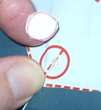 Take the root of one of the fins and use the standard double glue joint to attach it. This method requires that you place a thin layer of glue on the line drawn for the fin and the root edge. Let both of these partially dry then add a tiny amount of additional glue and press onto the rocket. The THICK part of the airfoil should go on so that it is farther from the end than the THIN part. If you are using the flush mount option the thin edge should be flush with the bottom of the main tube.