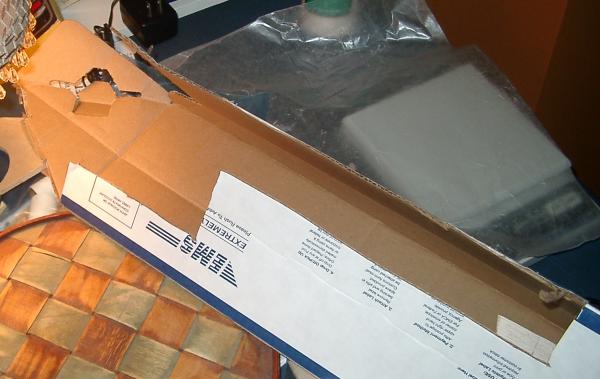 Cut a 2.5" x 5" length of corrugated cardboard from the USPS box. The exact dimensions will be dependent on the exact fit/thickness of the BT60 and transition. Essentially you want a single layer of cardboard to fit down inside the BT60 and end up flush with the top of the Outlander Nose. This sleeve helps to friction fit the BT55 altimeter bay.