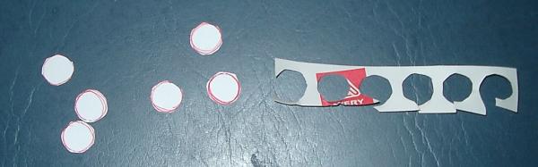 Take the fin template and cut out 6 paper fins from the printer paper. Overcut three of them slightly in the top to bottom direction to compensate for the airfoil. Use these larger ones on the curved sides of each fin.