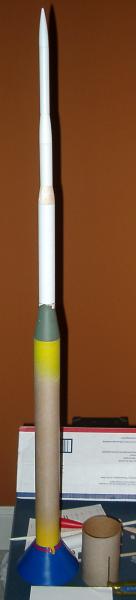 As with most LPR rockets of this type preparation was fairly simple. First I placed 5 sheets of Estes fire-resistant sheets into the main 24mm tube. After this I folded up the shock cord and pushed it in with my finger. The D12-3 Engine was placed into the rear of the rocket and held in place with an engine hook.