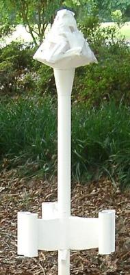 Once the parachute was in the rocket I put the nose on. This required turning the nose to match up index marks that I placed on the two. The nose has an internal tube style rod guide which has to be aligned with the lug that I placed on one of the fins. After checking this alignment I put the rocket on a 3/16th inch rod on an Estes Port-a-Pad.