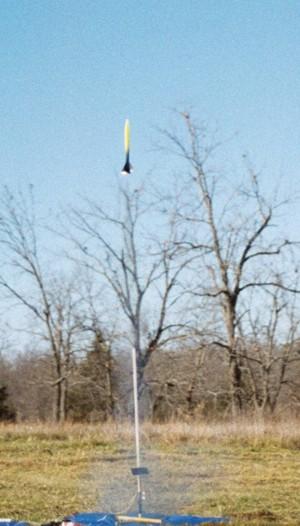 We tried again at the November 30th launch with much better luck. The photo shows my Aerotech Airspike just after the first launch from the taller of the two new rails.