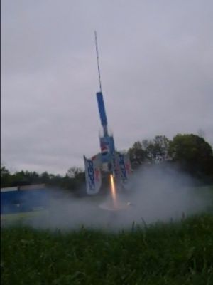 With all the layers I needed to make the centering rings and the fins rigid as well as the extra nose weight I needed to have any chance at a stable flight, I knew my weight was dangerously high for an 18mm motor. My simulations said that it would just barely make the minimum speed off the launch rod and would only fly about 200ft on a C5. The recommended delay was 2.5 seconds so I used a C5-3 (or so I thought). I decided to fly it for the first time alone without my kids because I wasn't certain of how stable it would be but it came off the pad nicely. It rolled a little and arced into the wind but seemed fairly stable and made a little altitude. Then it headed straight for the ground. It turns out that in my haste to launch this rocket before some threatening rain, I misread the label on the motor and used a C6-5 instead. The deployment charge fired well after the rocket impacted the ground.