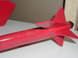 I wasn't all that concerned about finishing so I simply used several coats of primer and painted the whole rocket red. That is when I decided to start calling it Red Dog.