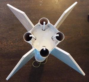 A scratch built rocket using Sunward's 4 canted motor mount.