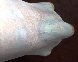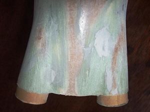 I finally flew her many many weeks after finishing her, mainly because of weather and my normal flying field being a bit too small for this rocket. However, only three motors (C6-7) lit. The rocket went up straight with a slight kink in the first 10 meters or so, probably as the clips were being yanked free from the unlit motor. Recovery was rather fast on a 15 inch chute, and the ground was hard. On landing she popped a fin and suffered a lot of paint damage with flakes coming off the Fablon laminate. I am now looking to remove all fins and sand her back to the body tube and redesign the fins.