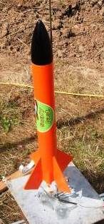 I was going for a two tone finish on the body, but after much swearing due to masking tape that continues to bleed paint, I went for orange on the whole rocket. The finish is not good, and I'm really disappointed with it. Sticker was then applied.
