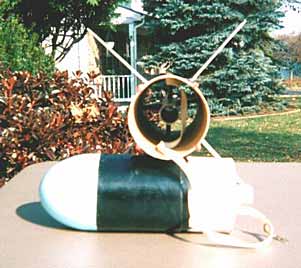 Make the coupler tube by cutting a section of the wrapping tube lengthwise and turning in on itself. Glue this into the forward tube so that 2" extends out the rear and ?" extends out the front. Cut the bulkhead from balsa stock and glue the BT-20 coupler on its center. The balsa may be too weak to hold a hook-eye. Instead, punch a hole in the bulkhead midway between the BT-20 coupler and the edge of the coupler.