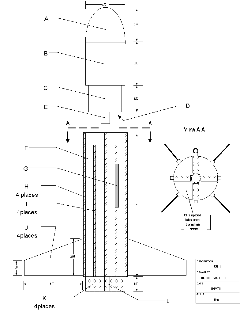 The SR-2 was built in the late 80's by my son (~7 years old at the time). I am providing this review as an example of using scrap materials and to document an approach to parachute deployment that does not require wadding.