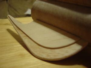 Cut the six small fin set out of 1/8 inch balsa. Attach one small fin to both sides of the large fin, creating a sandwich. Make certain to leave about a ½ inch gap between the leading edge of the large fin and the leading edge of the small fin. This will create a "step" look to the fin. Repeat for the other fins.