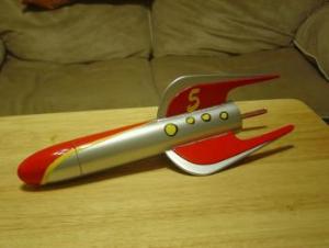 To paint the nose cone, you should use tape that will stretch so you get nice curves. I didn't have any on hand so I had to improvise. Once that part is dry, take a touch-up brush and some yellow paint and paint the yellow trim around red on the nose cone.