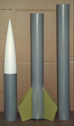 Quantum tubing and a PML nosecone. The fins were cut from .093" G10