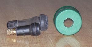(Scratch) Hydro 1L Water Rocket The bottle is pressurized with an electric tire pump that is adapted to the bottle-cap 'nozzle' with a car tire stem. I liberated some used stems from a local tire shop. You have to cut the bulb off of the tip of the stem, leaving only a tapered end. I cut the bulb off at its base, leaving about a 1/2" diameter, and trimmed around the inner brass tube. Jimmy cut his lower and cut through the brass tube. The nozzle is the bottle cap with a hole drilled in the center.