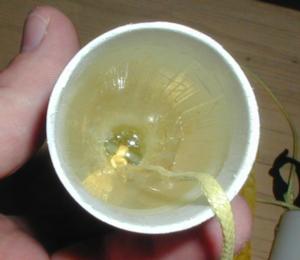tightly (no choice) wrapped parachute, then the shock cord. Push in the