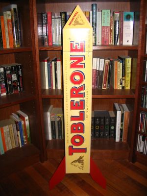 A 10-pound Toblerone converted to a single-staged, 29mm mid-power rocket (minus the chocolate). No, it isn't a joke. They actually make 10-pound Toblerones. Where? Who knows. It was a gift. But I pictured it with fins the moment I first opened it up!