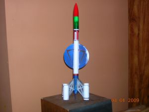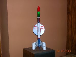 I'm going to rate this build a 3.5. Cutting out the sections on the struts, to make it look like struts was a little tricky. The mounting of the tube fins to the struts and the fin/strut assembly to the main body was a little tricky, too. I do recommend a separation of the main rocket and fin assembly for ease of assembly. I also used a hard coat Modge Podge to protect decals and finish.