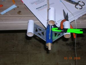 Flight 1: A6-4 way underpowered. Barely got off ground and broke a strut.