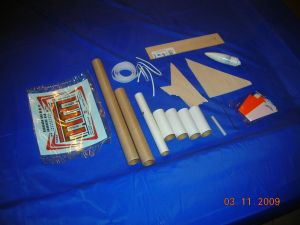 This is my box o' parts entry. Single stage rocket with small cargo bay and parachute recovery. (Parts were sent to